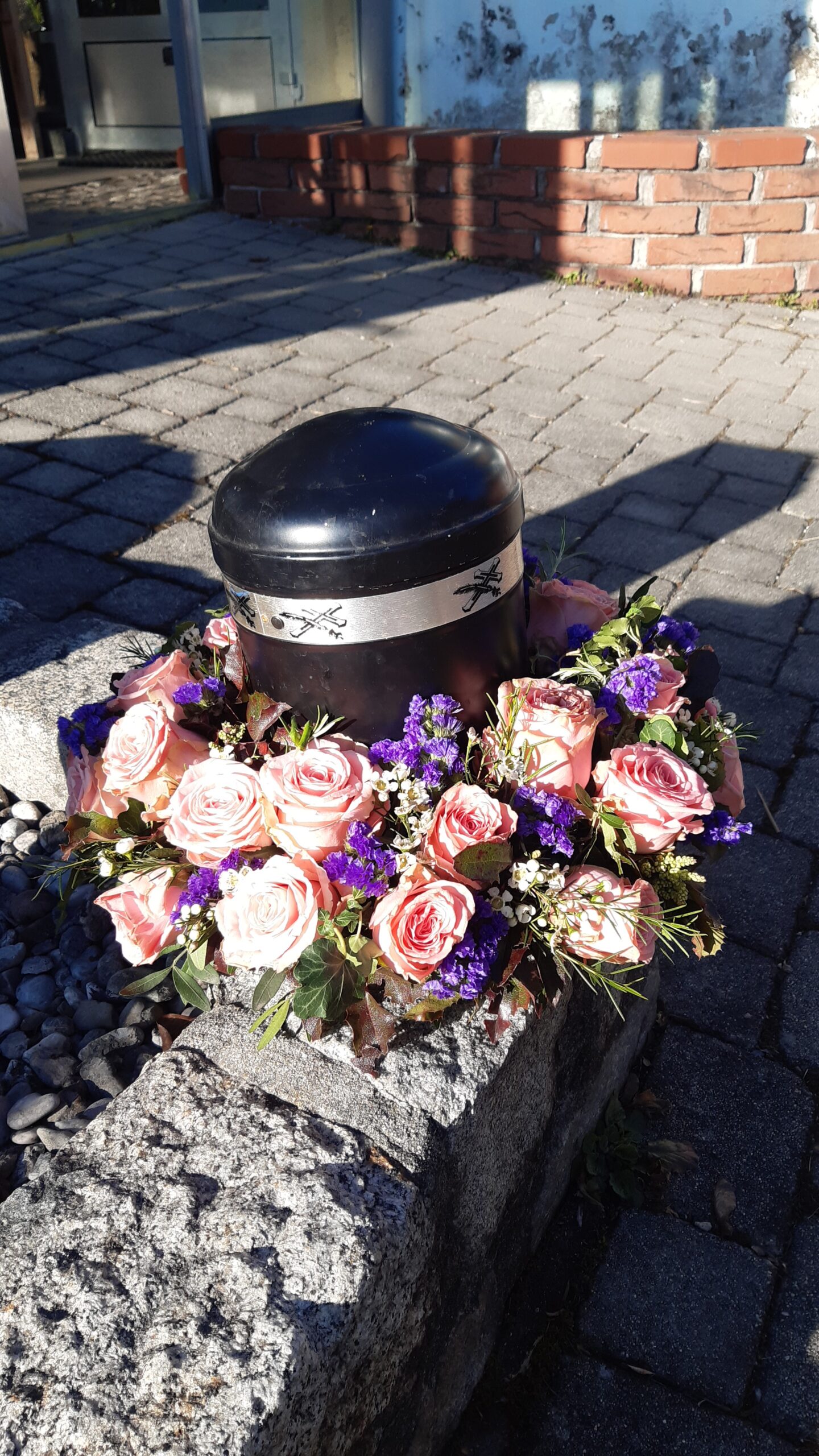 rosa Rosenkranz mit Schleierkraut und Statice